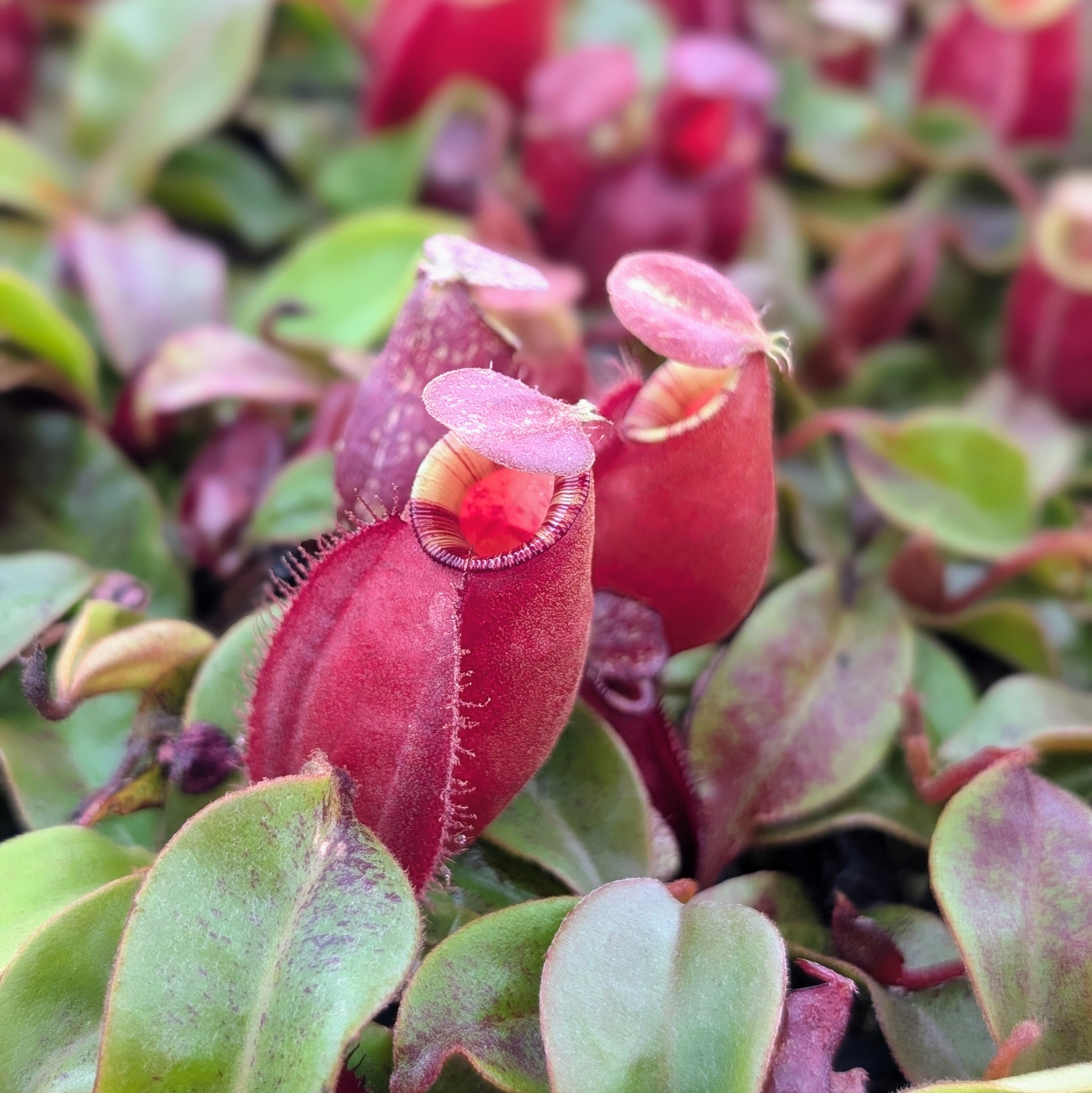Nepenthes is a low-maintenance tropical pitcher plant that thrives in bright, indirect light and consistently high humidity. Ideal temperatures range from 70–85°F (21–29°C) during the day and no lower than 55°F (13°C) at night. Use a well-draining, low-nutrient medium, and keep the soil moist at all times with distilled, rain, or reverse osmosis water—avoid tap water, which can harm the roots. Do not fertilize directly; this carnivorous plant gathers nutrients by trapping insects in its pitchers. Provide good air circulation and avoid waterlogging. Perfect for terrariums or greenhouse environments, this compact hybrid adapts well to indoor growing with the right conditions.