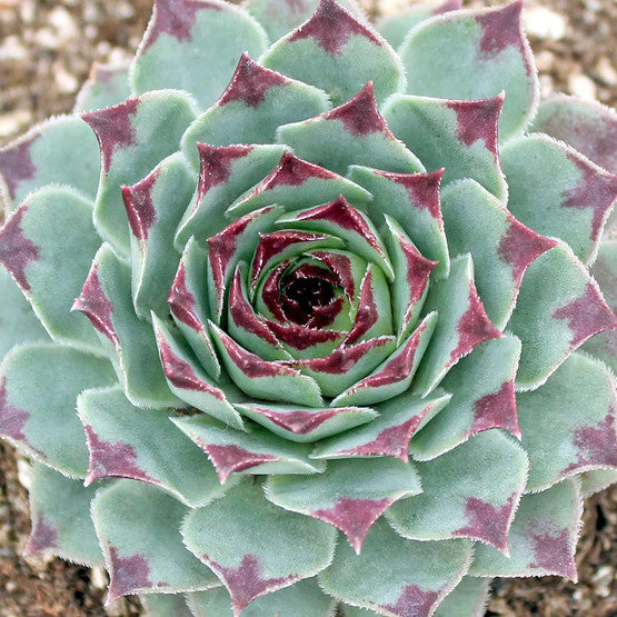 Reaching up to 6 inches in height and spreading with ease to form dense clusters, this plant is not only a visual delight but also a testament to the tenacity of life in harsh conditions. Its common name, "Hen and Chicks," refers to the main rosette (the "hen") and the smaller rosettes (the "chicks") that sprout from its base, creating a charming family-like cluster. This natural propagation ensures that Sempervivum calcareum can cover ground beautifully, making it an ideal choice for ground cover or rock garden highlights.
