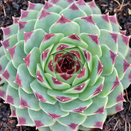 Embodying the resilience and beauty of its genus, Sempervivum calcareum is a captivating succulent hailing from the rocky slopes of Europe. This hardy plant showcases a symphony of color in its rosettes, with leaves that blend from a deep, almost royal green at the base to striking tips of vivid red or burgundy. The contrast is both elegant and dramatic, ensuring that Sempervivum calcareum stands out in any succulent collection or rock garden.