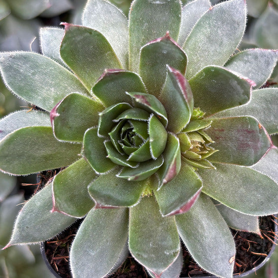 Sempervivum do most of their growing in the spring and summer, and will thrive with weekly watering and afternoon shade if temperatures exceed 80°F. They are incredibly frost-hardy and will happily thrive through winter under an insulating blanket of snow. Protect from heavy rains and standing water to prevent rot.